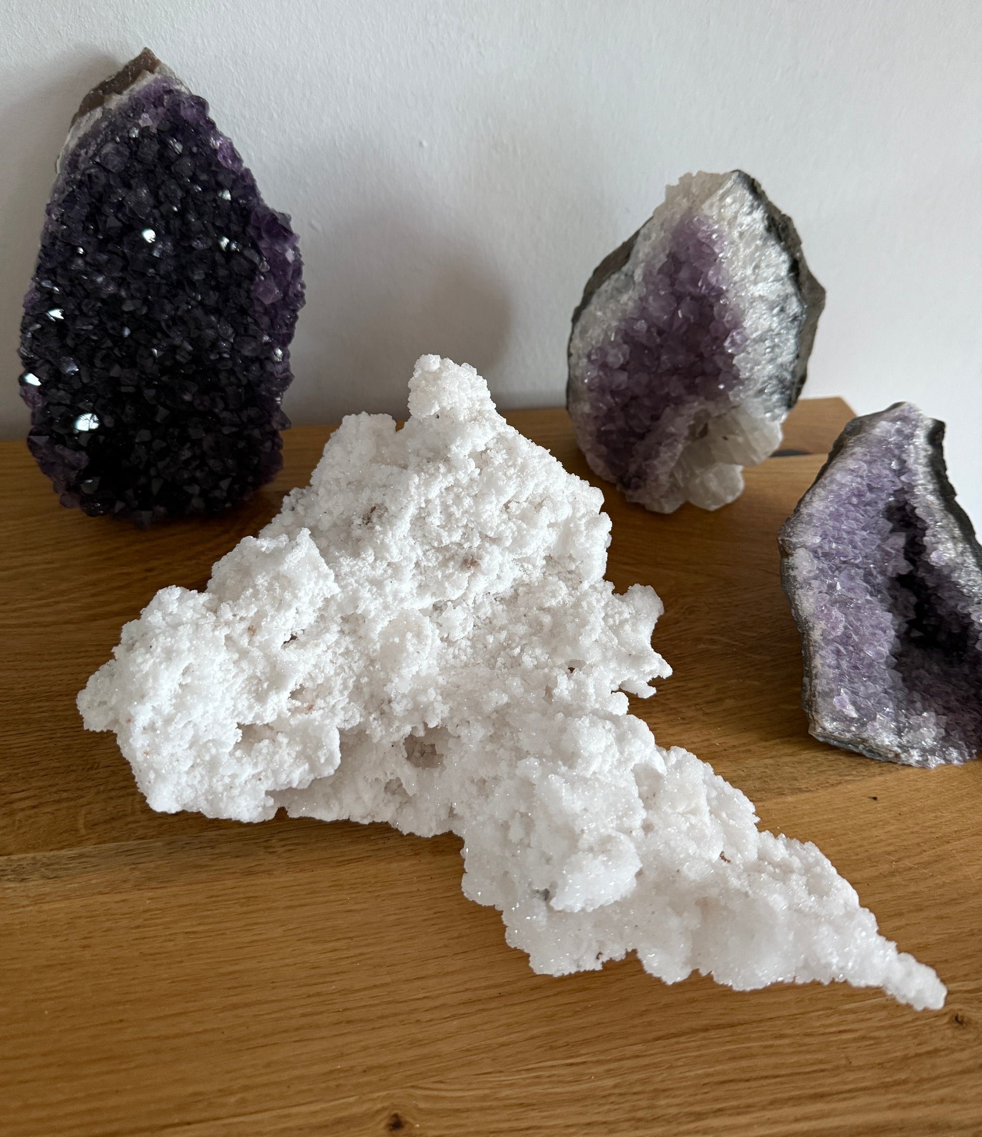 Mit seiner Größe und funkelnden Ausstrahlung ist dieser Aragonit nicht nur ein dekoratives Highlight, sondern auch ein einzigartiges Sammlerstück. Ein ideales Geschenk für alle, die die Schönheit und Symbolkraft von Mineralien lieben.