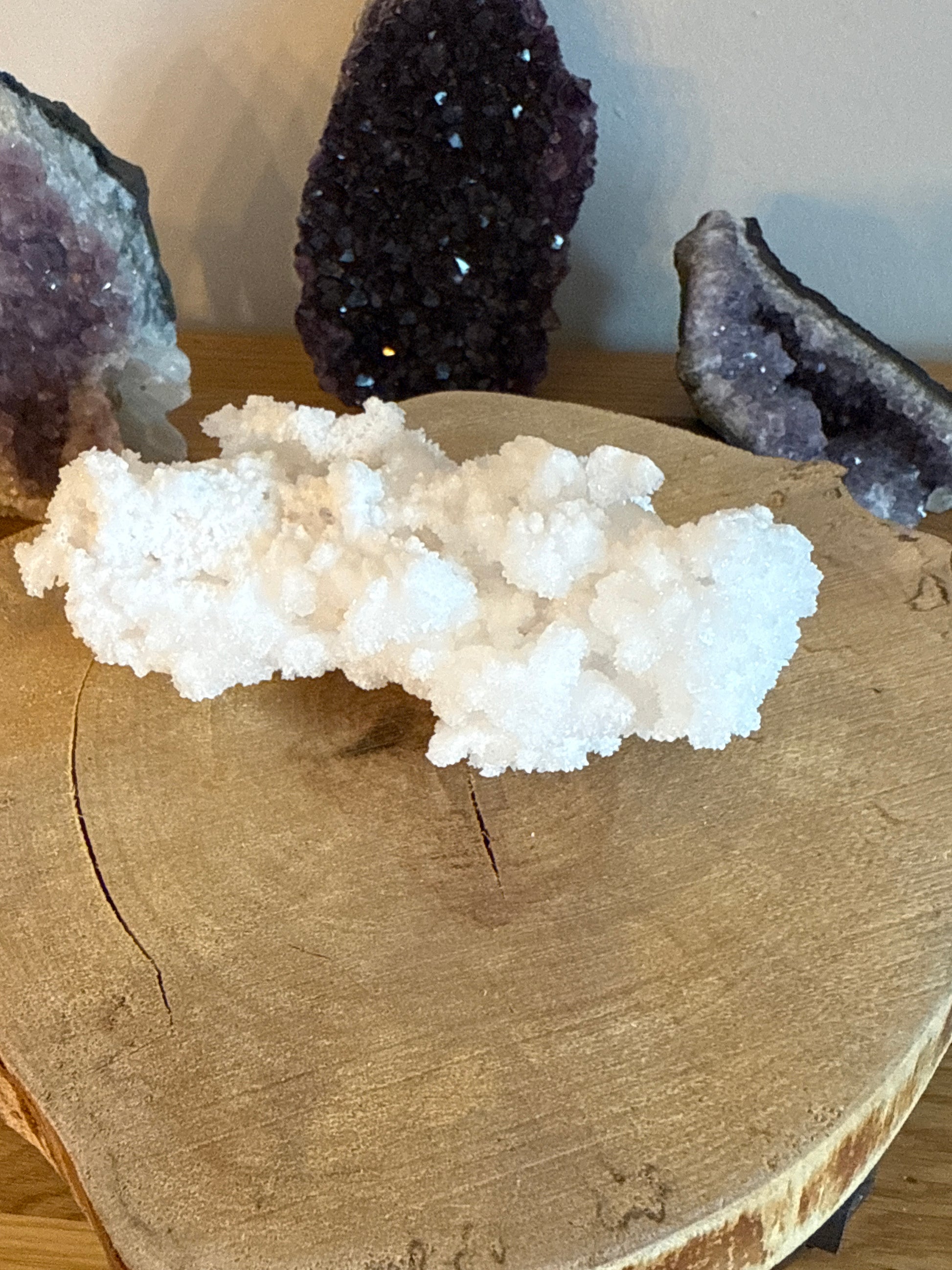 In der traditionellen Steinheilkunde wird Aragonit symbolisch mit Ruhe, Stabilität und Erdung in Verbindung gebracht. Die helle, funkelnde Ausstrahlung gilt als Sinnbild für Klarheit, Reinheit und Harmonie.