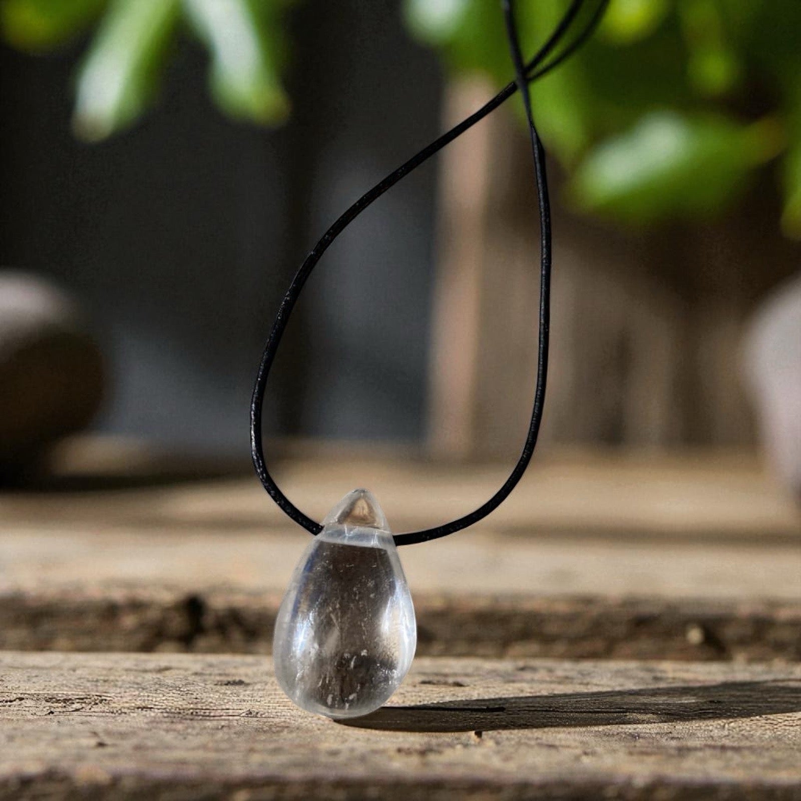 Bergkristall "Drop Shape" gebohrter Kettenanhänger mit Lederband