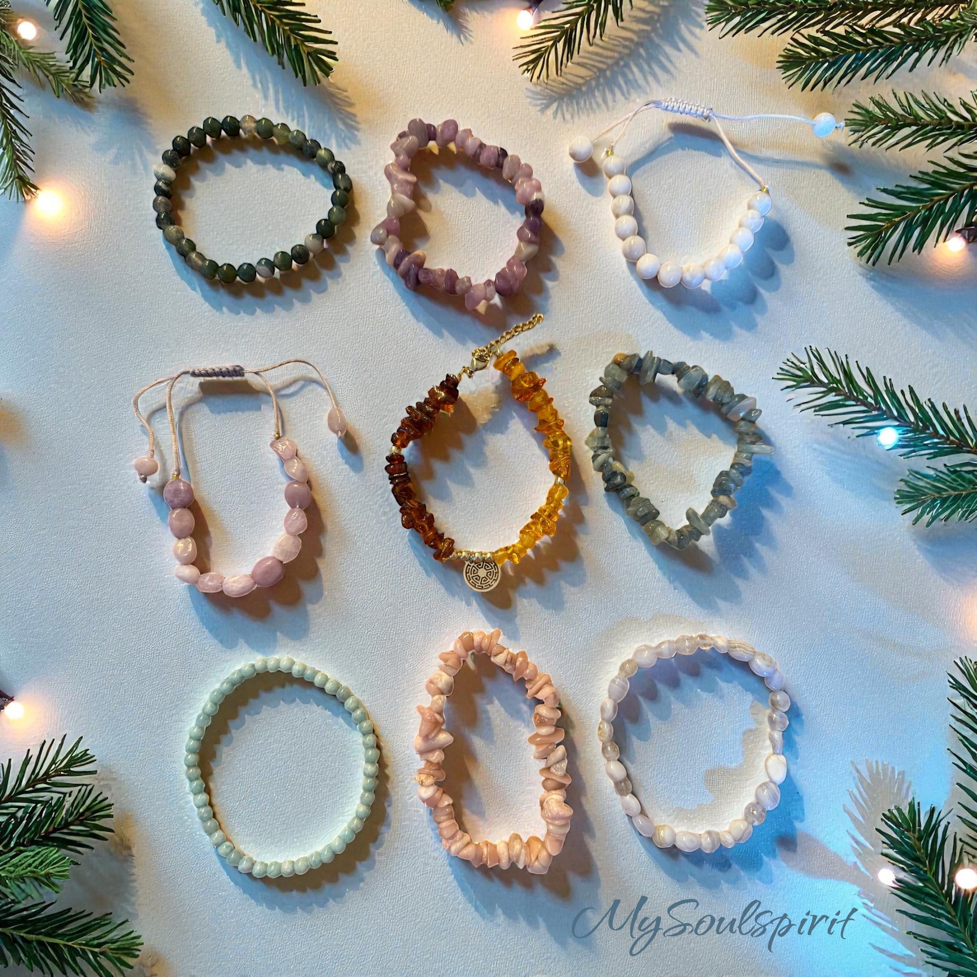 Adventskalender mit 24 Türchen, gefüllt mit handverlesenen Edelsteinen. Je nach Variante zusätzlich mit Themenarmband, weiteren Armbändern (Splitter, Perlen oder Flecht) sowie Kettenanhänger. Exklusiv bei MySoulspirit.