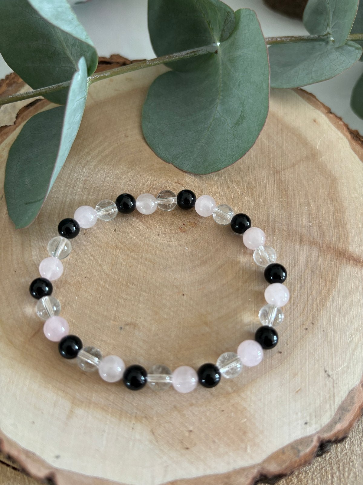 Armband „Abgrenzung & Selbstvertrauen“ – Onyx, Rosenquarz & Bergkristall