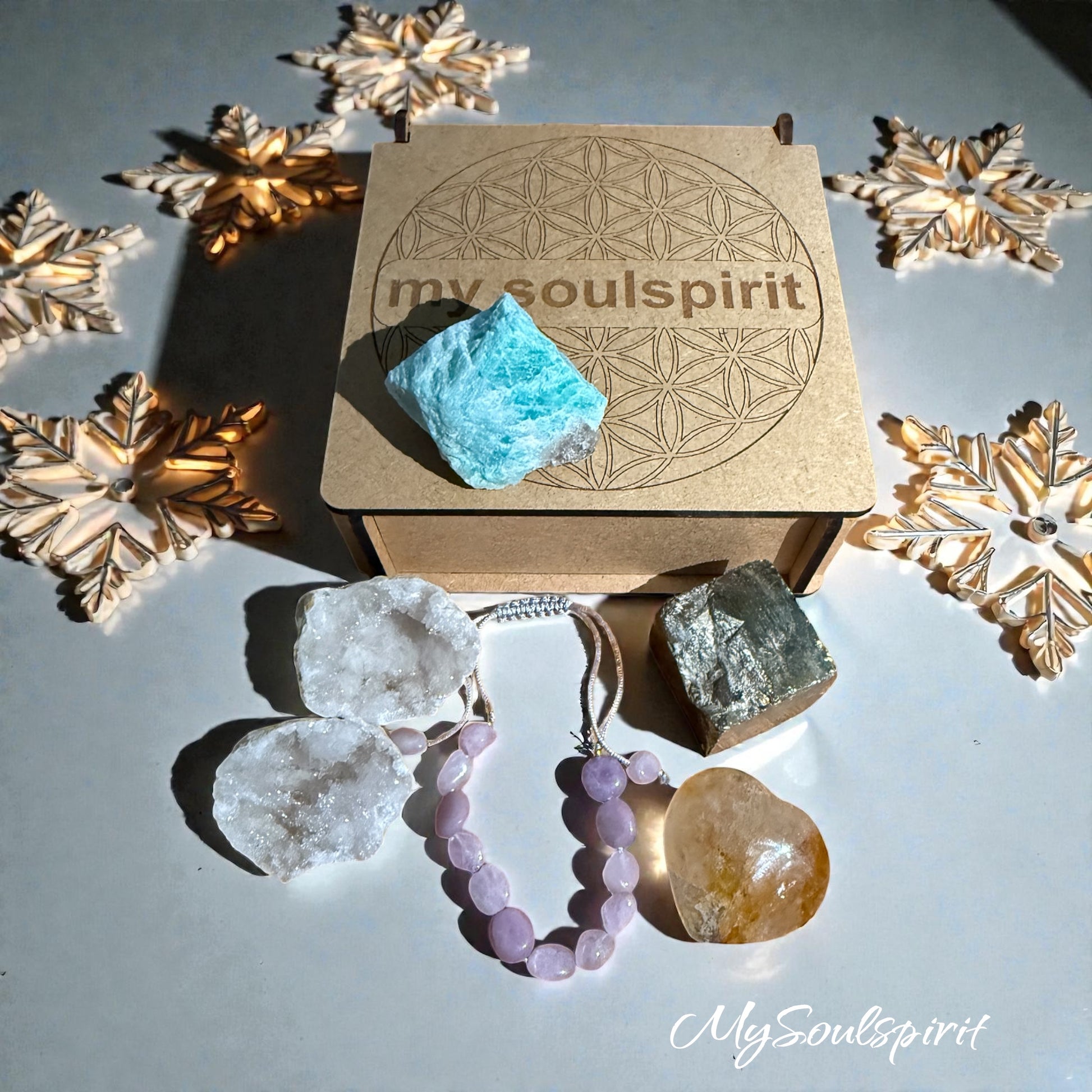 Unsere mysoulspirit Geschenkboxen sind voller liebevoll ausgewählter Kristalle, kleiner Highlights und besonderer Momente. Perfekt, wenn du etwas verschenken möchtest, das wirklich von Herzen kommt – persönlich, schön und einfach anders.